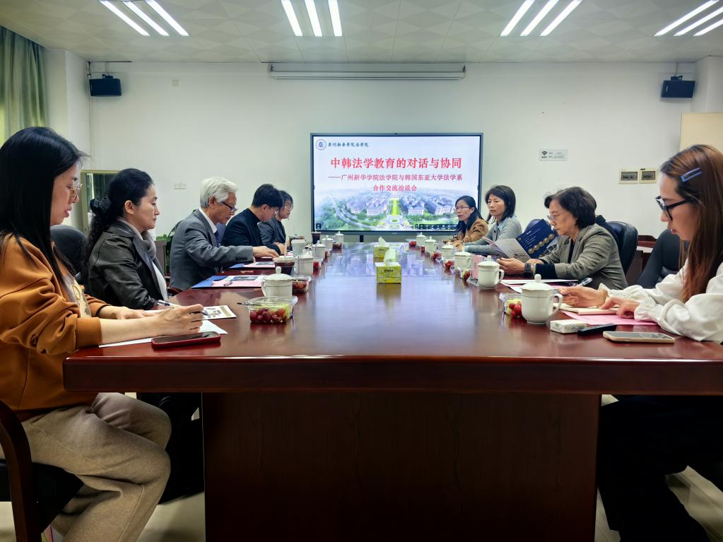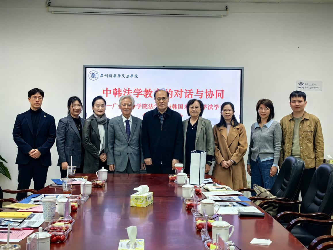 12月17日下午,“中韩法学教育的对话与协同”合作交流洽谈会在广州新华学院正式举行。本次会议旨在搭建开放友好的对话平台,围绕法学教育模式、师资联合培养、学术资源共享及学生交流项目等议题展开务实交流,共同推动全球化背景下中韩法学教育的融合与创新。出席会议的双方代表有韩国东亚大学研究生院法学系赵东济教授、法学系李京美副教授、政策研究室金成泰室长;广州新华学院马龙海副校长,法学院执行院长李岚教授、副院长叶秀副教授、党总支副书记李鑫以及教师代表易思等。会议由法学院陈华丽副院长主持。