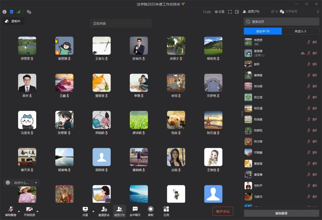 2026年1月9日晚,法学院通过线上会议形式组织召开2025年度工作总结会议。法学院院长李正华、执行院长李岚、副院长叶秀、副院长陈华丽、党总支副书记李鑫及全体教职工参加会议。会议由李岚院长主持。