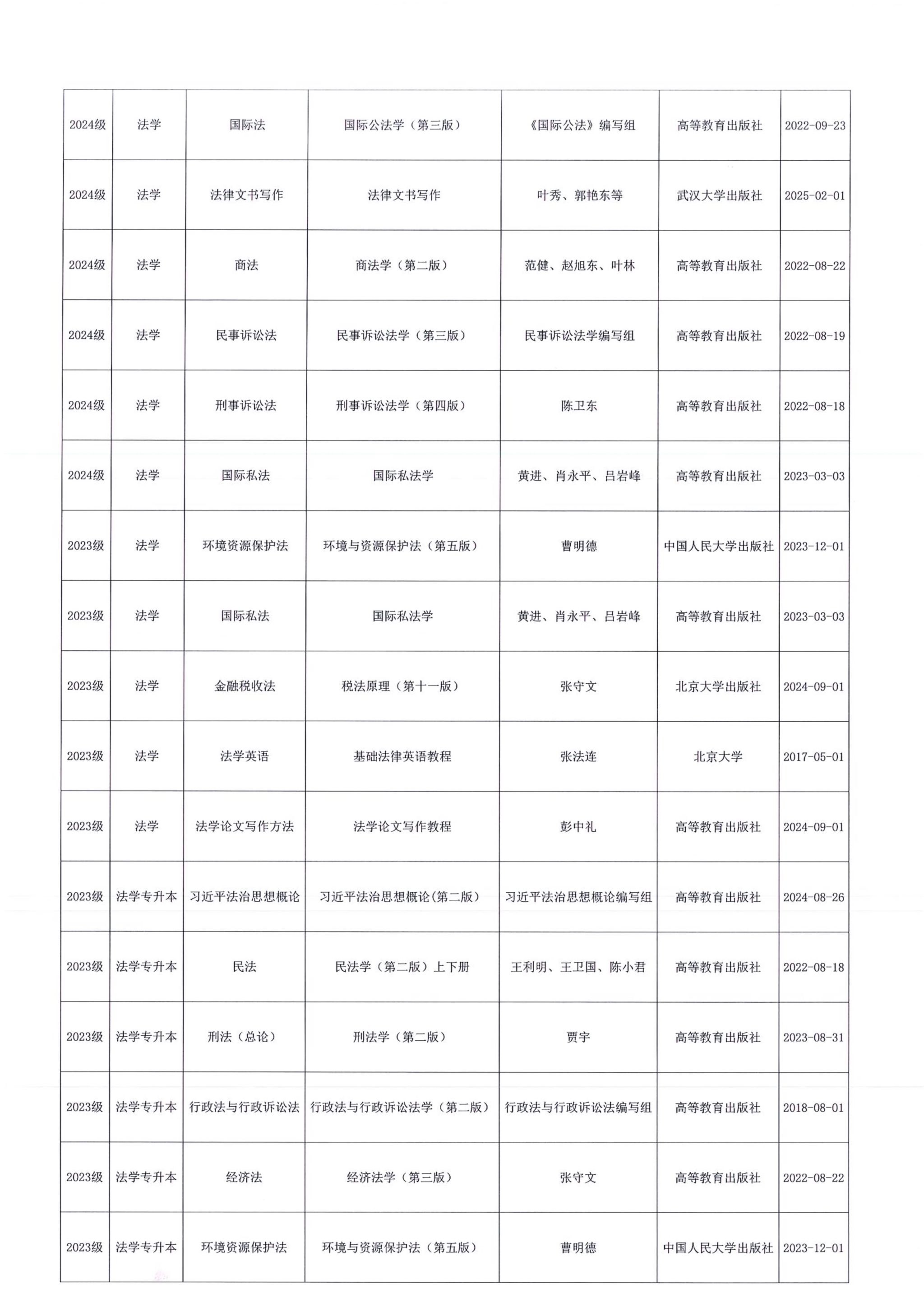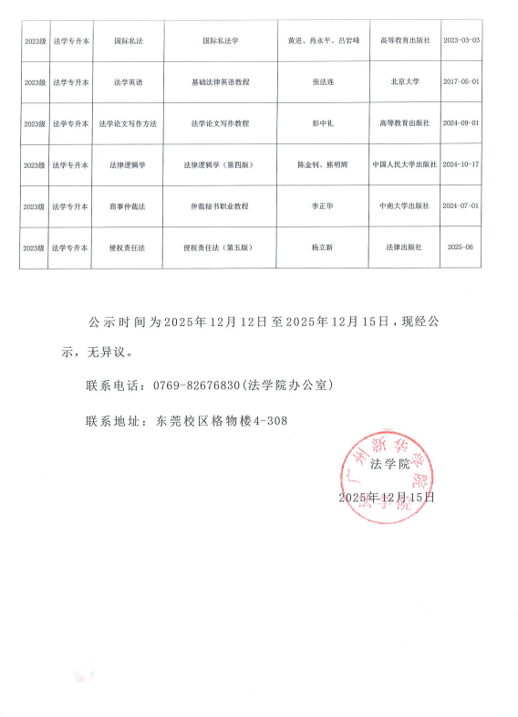 关于法学院2025学年第二学期教材选用结果的公示