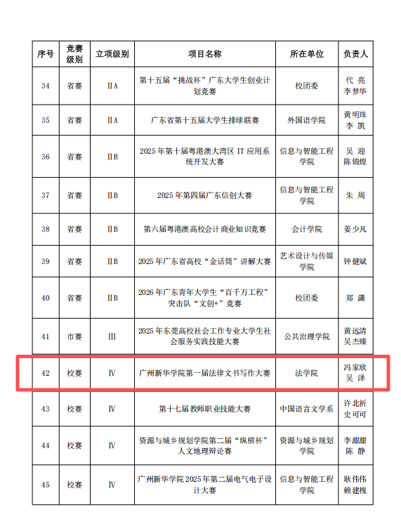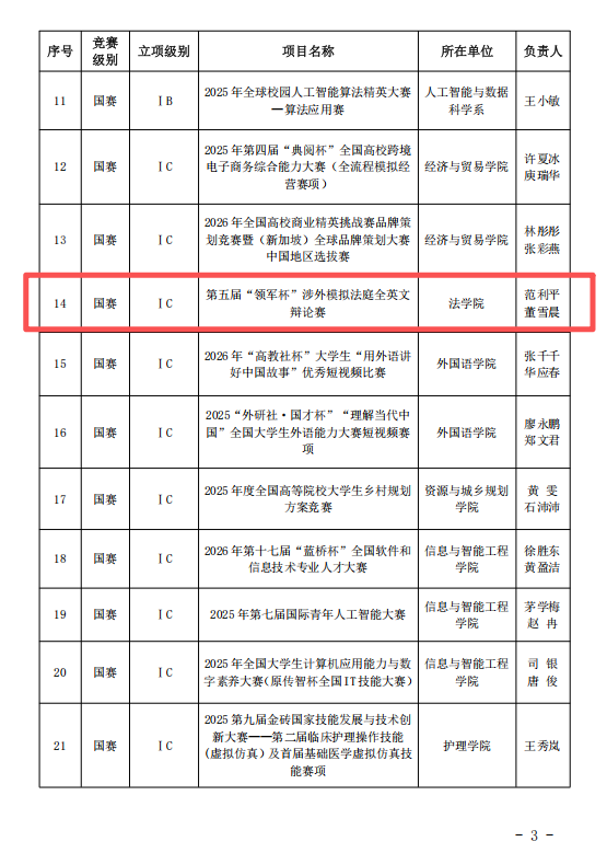 法学院教师范利平、董雪晨、冯家欣、吴泽申报2025学年第一学期学科竞赛资助项目成功立项