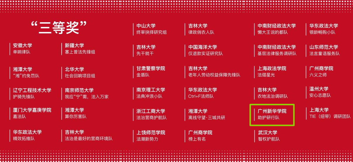 作为锤炼学生创新精神、协作能力与竞争意识的重要抓手,学科竞赛已成为衡量人才培养质量的关键标尺。其中,以“从法杯”全国大学生“法治中国”调研大赛为代表的高水平赛事,为关注中国法治发展的法学学子提供了交流互鉴、共同进步的专业平台。我院学子能够在全国范围内的激烈竞争中脱颖而出,不仅是个人长期勤学善思、积累沉淀的成果,更是学院始终坚持以法治教育为重点,持续强化学生综合素质与实践能力培养的成效写照。