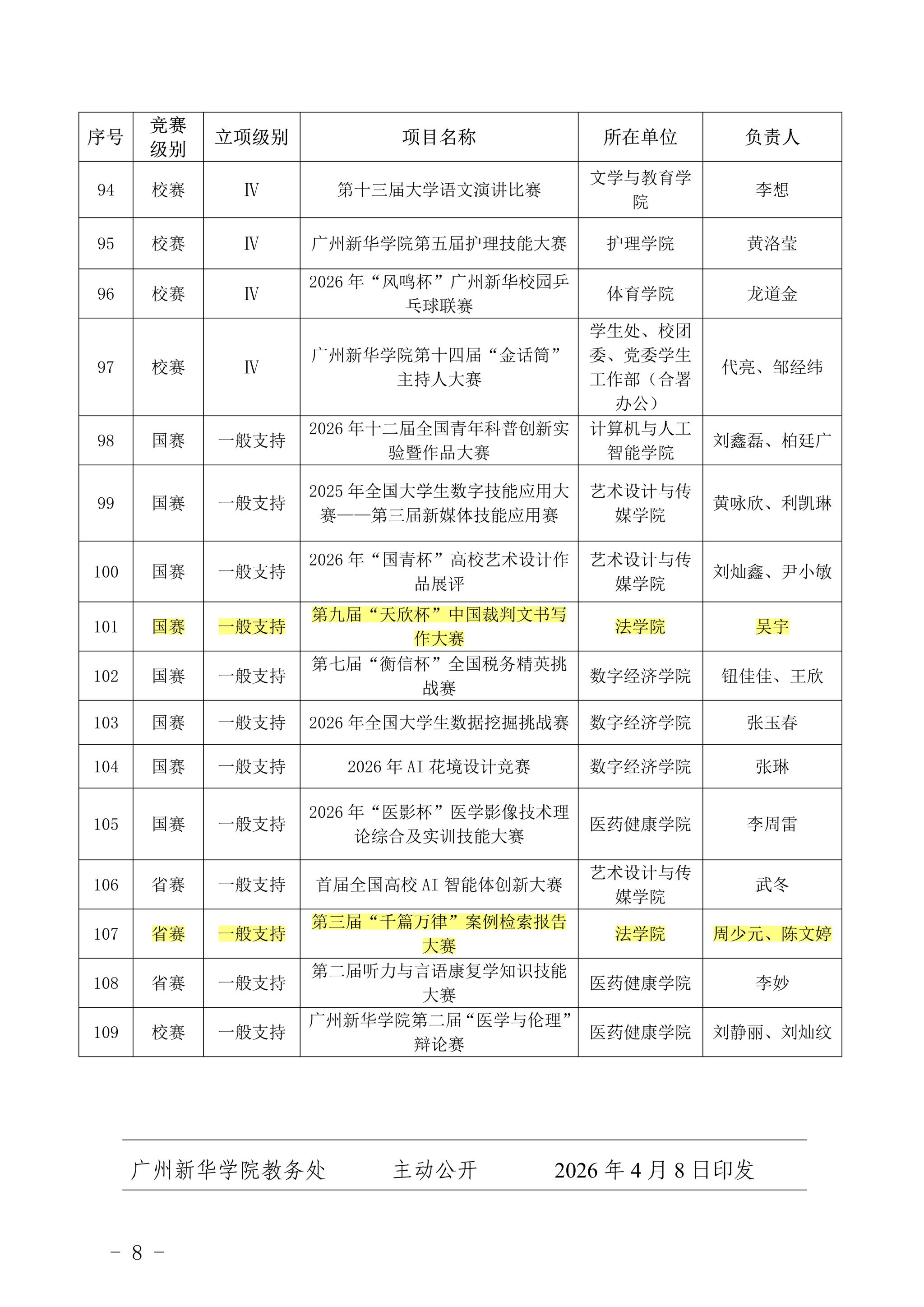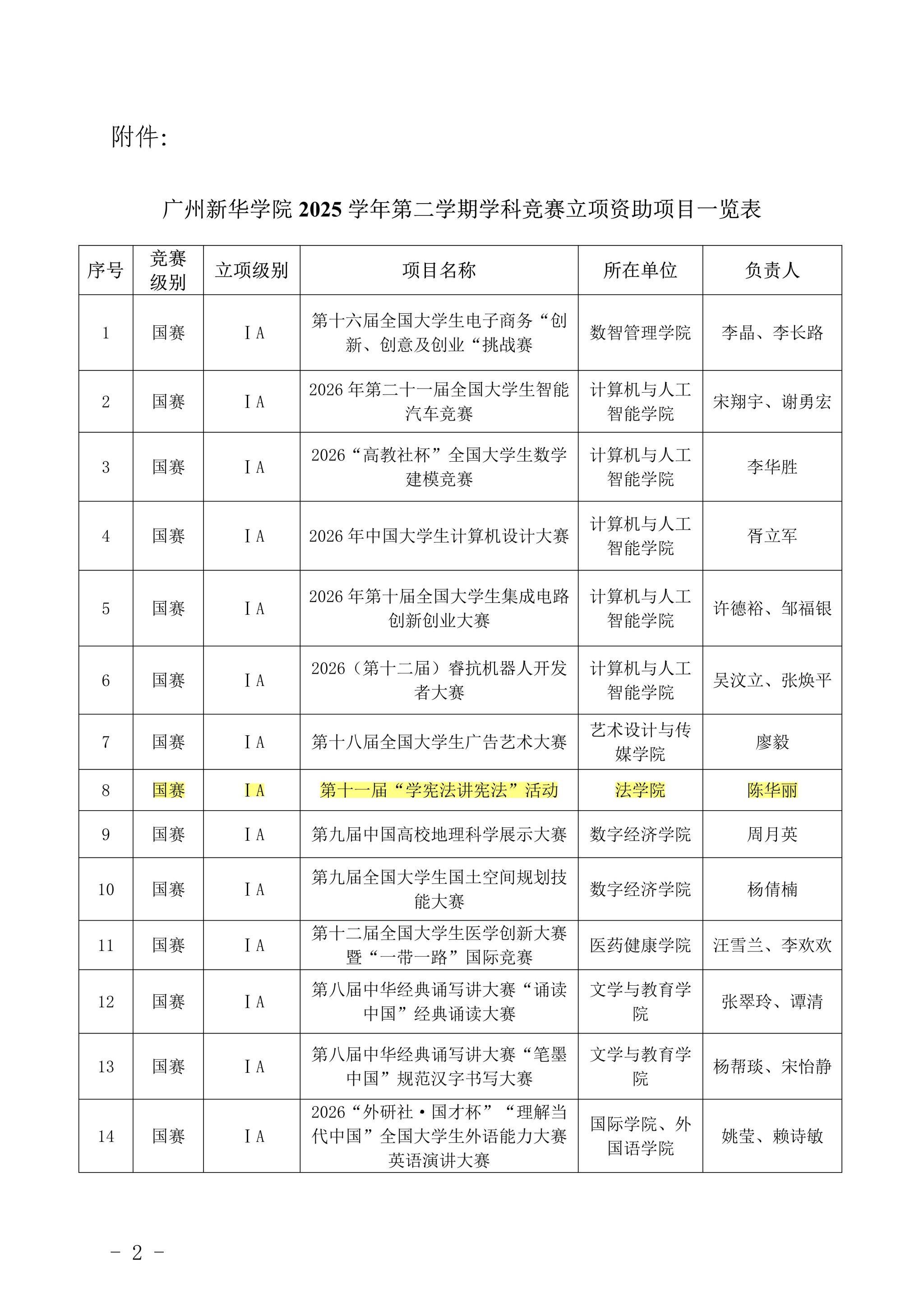 法学院在2025学年第二学期学科竞赛立项资助项目申报中成功立项8项