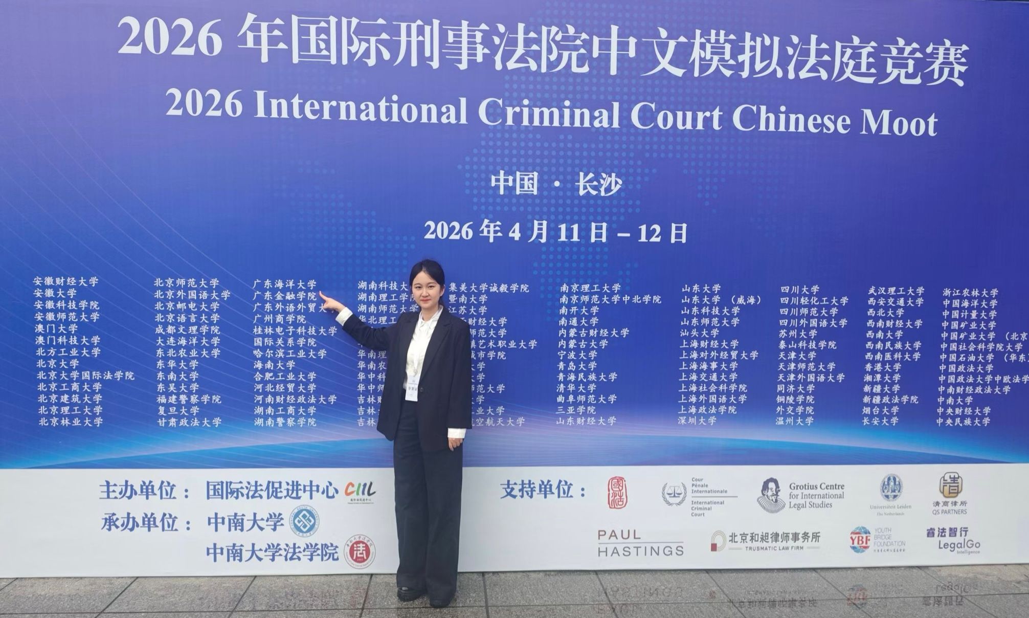 近日,2026年国际刑事法院中文模拟法庭竞赛在长沙落幕。广东金融学院与广州新华学院联合培养硕士研究生洪源作为队长,带领参赛队代表学校参赛,凭借扎实的专业功底与出色的庭辩能力,荣获优秀奖。
