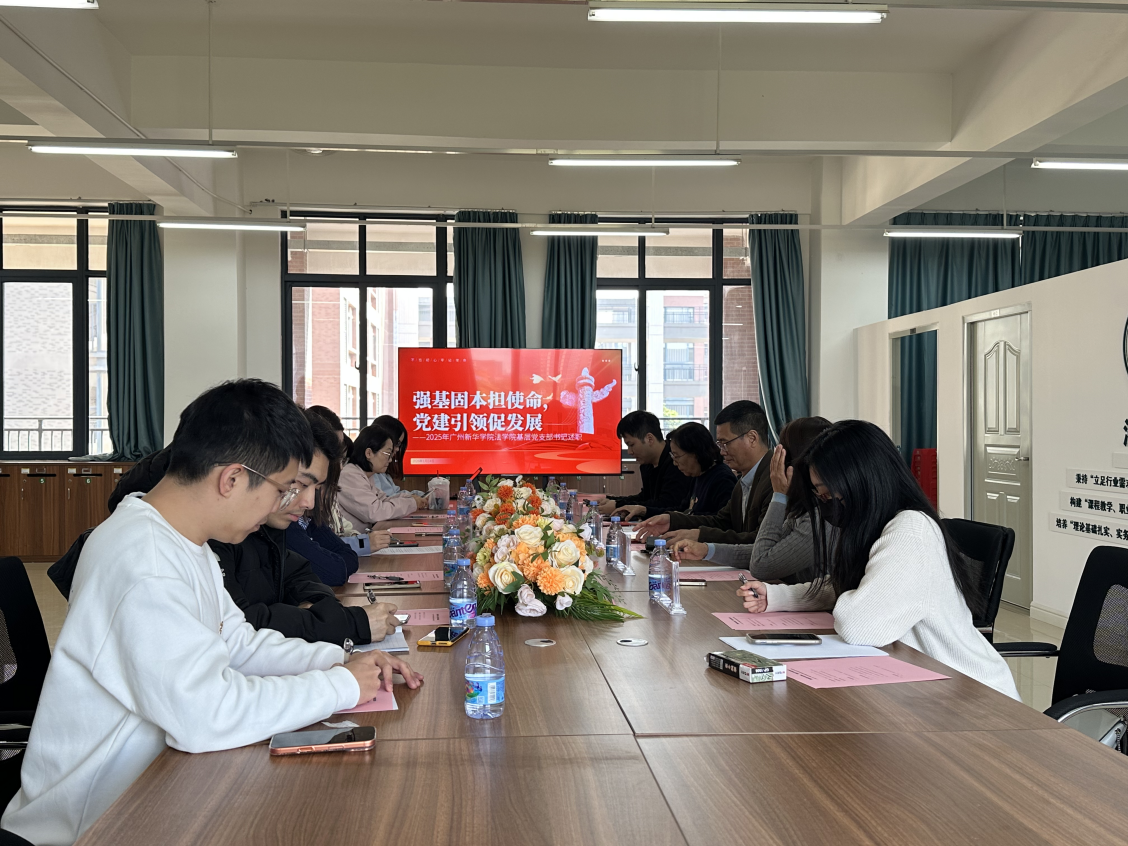 为深入贯彻落实学校党委关于开展2025年度基层党组织书记抓基层党建述职评议考核工作的部署要求,全面检验基层党建工作成效,推动全面从严治党,法学院党总支于2026年1月14日上午在格物四308会议室成功举办了2025年度基层党支部书记述职评议会。会议以“强基固本担使命,党建引领促发展”为主题,全面总结回顾过去一年学院基层党建工作成效,谋划部署新一年重点任务。广州新华学院纪委书记、党委委员林源,法学院执行院长、原党总支书记李岚,法学院党总支副书记李鑫,以及法学院党总支委员、各党支部书记、副书记和委员等出席了会议。会议由法学院党总支副书记李鑫主持。