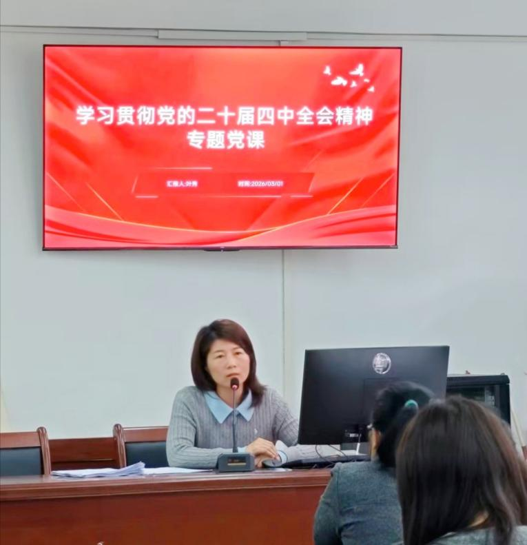 为深入学习贯彻党的二十届四中全会精神,锚定“十五五”时期发展目标,推动法学院新学期工作高质量开局,2026年3月1日上午,法学院教工党支部召开专题党课,由支部书记叶秀同志主讲,全体教工党员参会学习。