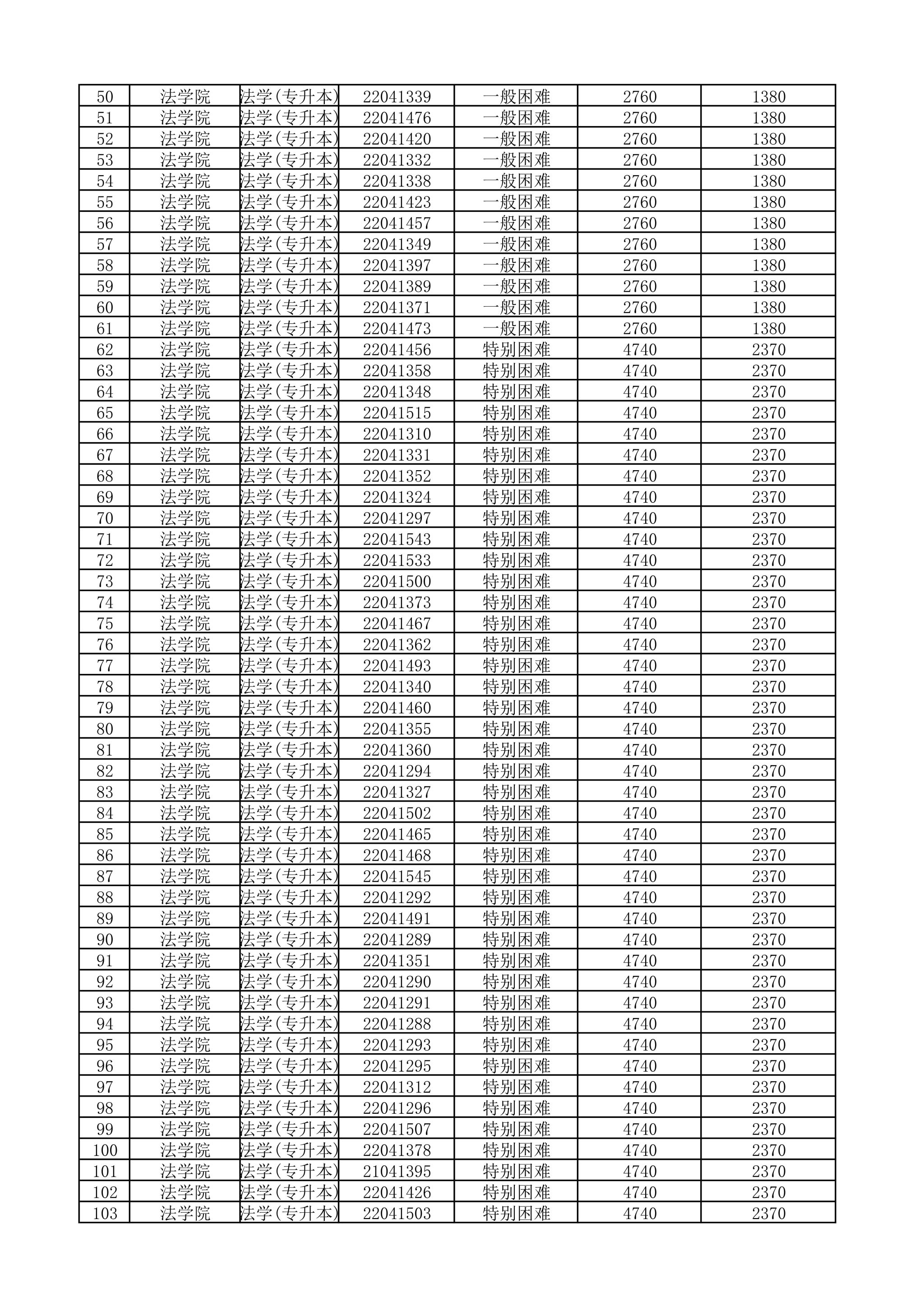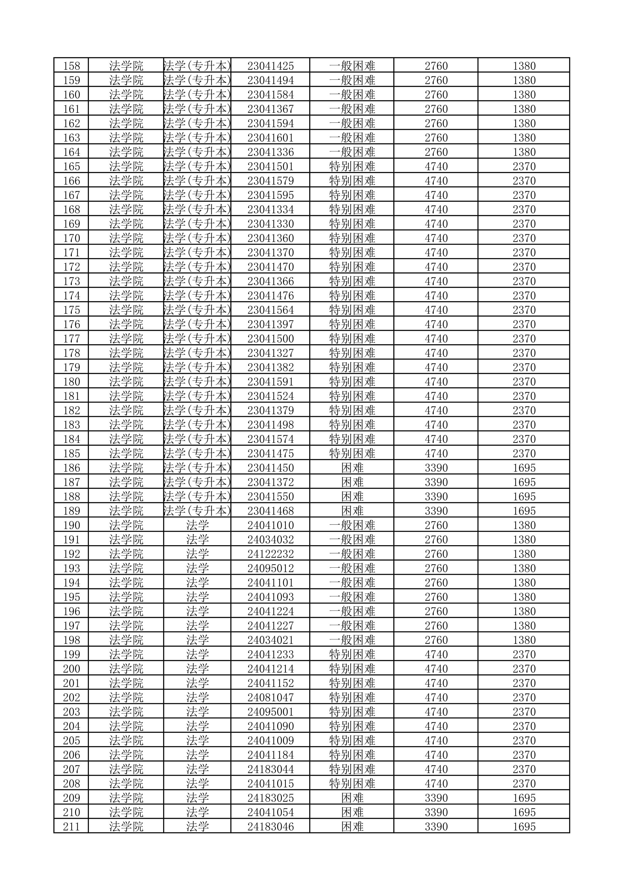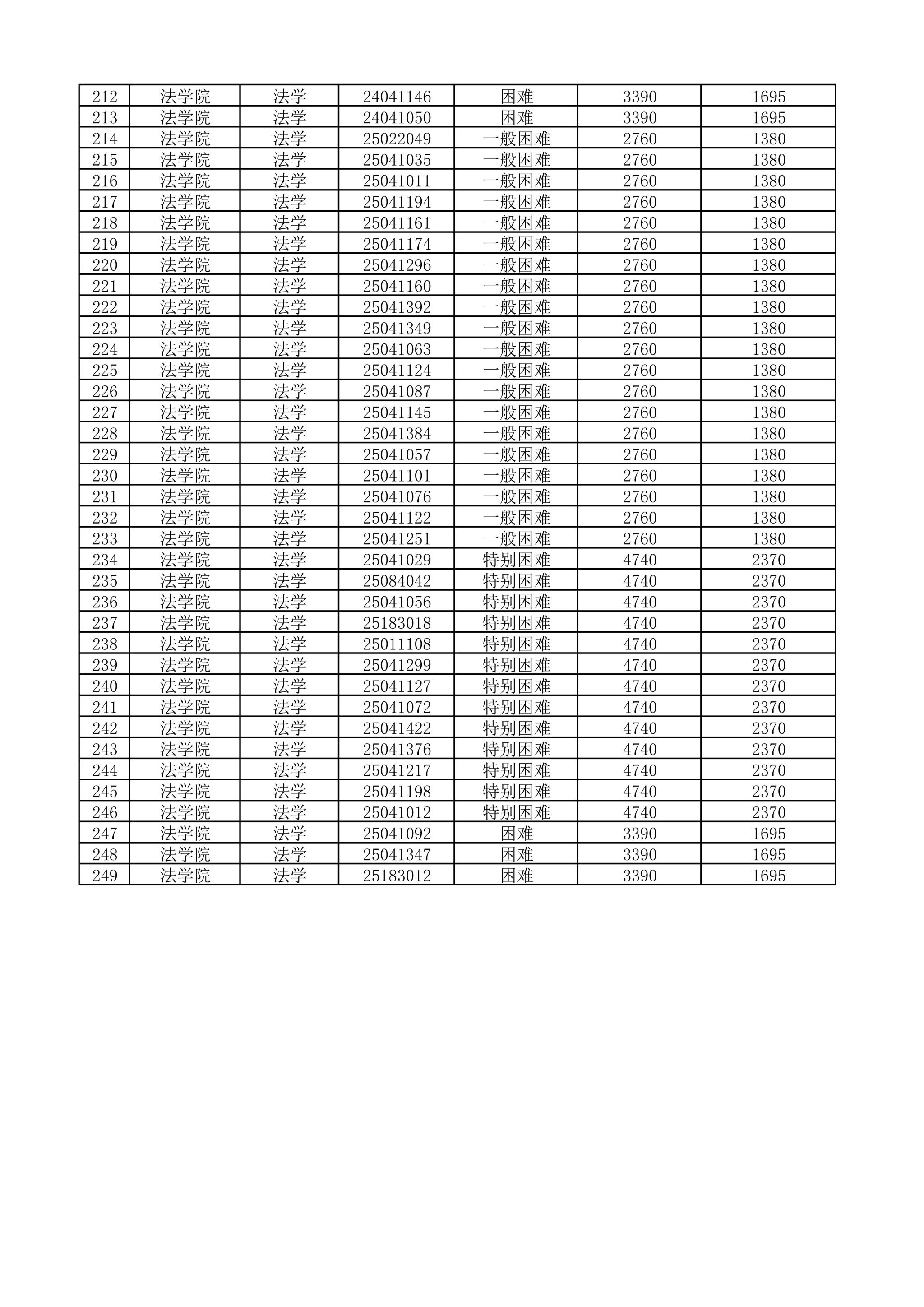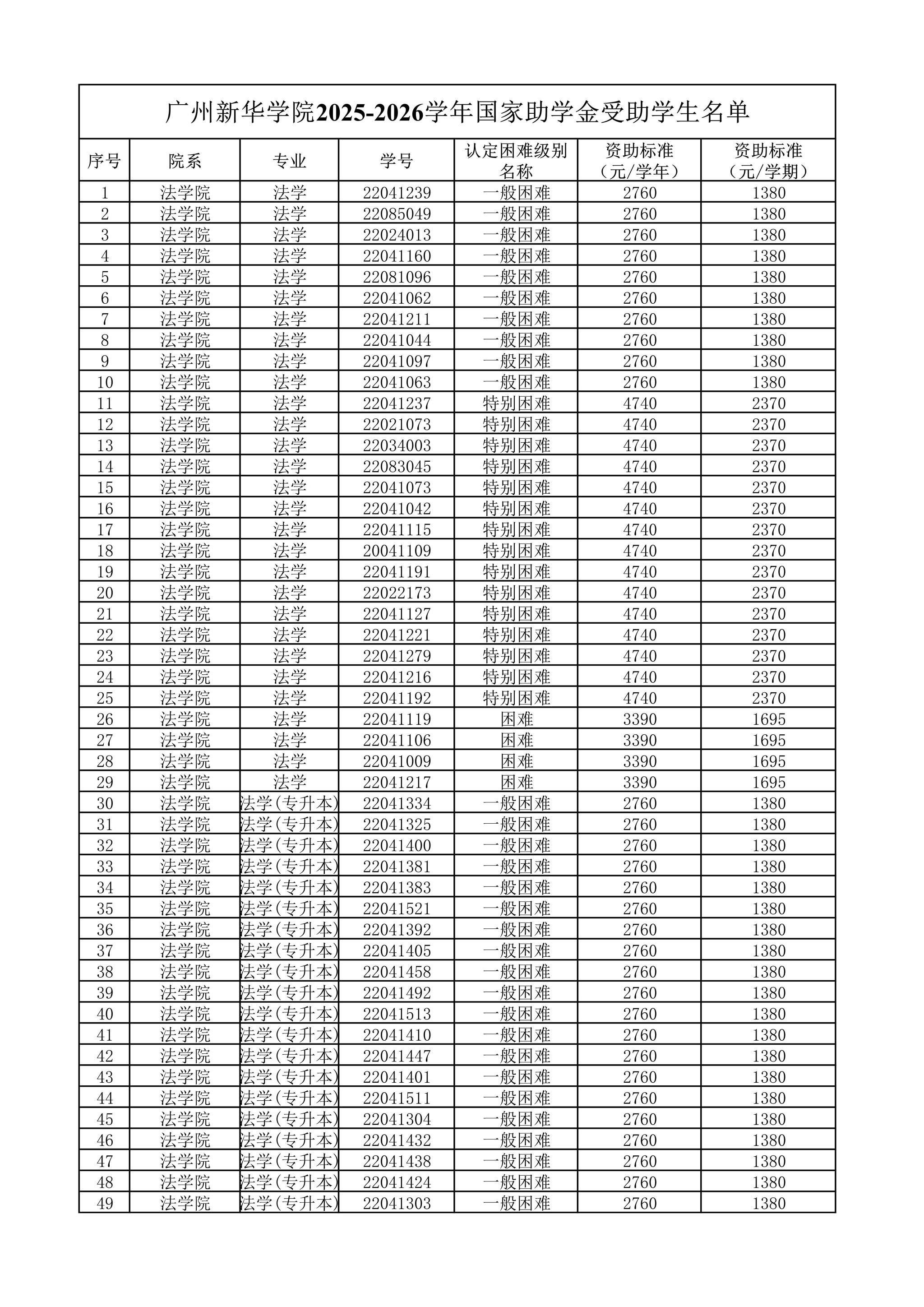 法学院2025-2026学年国家助学金受助学生名单
