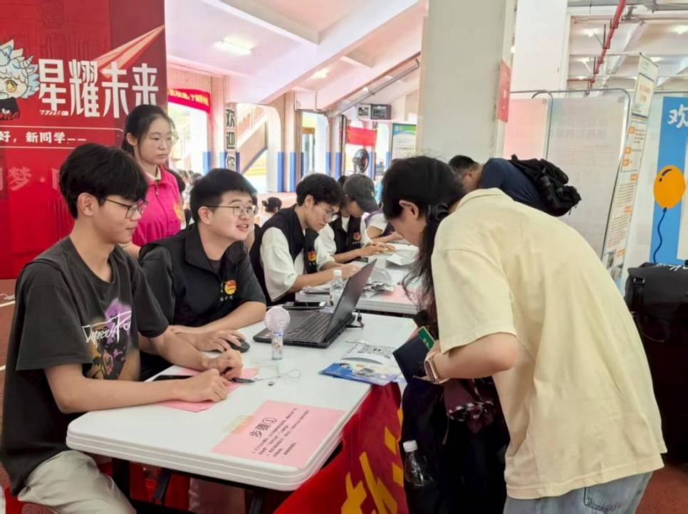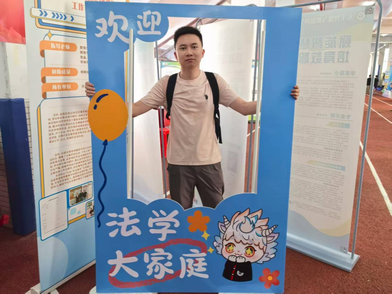 迎新当日的骄阳,未能阻挡师生们的热情。志愿者们精心布置的迎新现场营造了一种温馨而热烈的迎新氛围。他们穿着各色的马甲,每一个身影都在传递“归属感”。报到点精心设计的宣传展板与拍照打卡点,为新生搭建起展示自我、记录成长的舞台,更成为他们与校园初遇的美好印记。相信新生们会怀揣对法学的热爱,踏上新的“法途”征程。
