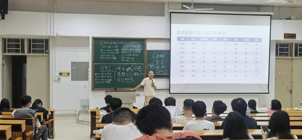 为帮助法学院学生明晰法考备考路径、破解备考难题、提升备考效率,助力学生发挥专业优势、顺利通关法考,近日,“聚焦法考备考”经验分享会在定静2D403顺利举行。本次分享会特邀深耕法学教学领域多年、经验丰富的张李儒老师担任主讲嘉宾,法学院各年级备考学生齐聚一堂,共赴这场干货满满的备考盛宴。