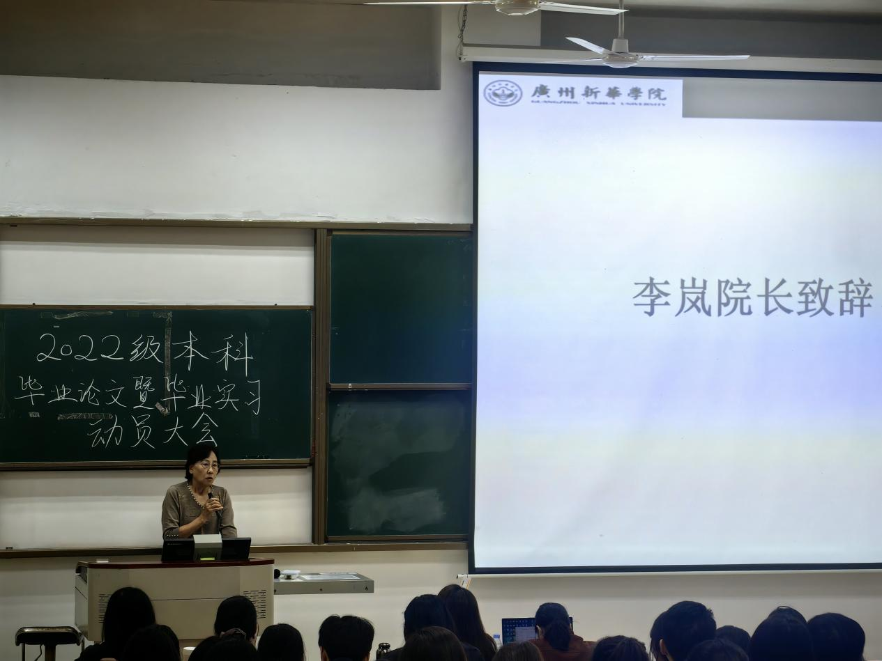 大会伊始,李岚院长面向2022级本科毕业生作动员讲话。她指出,毕业实习与毕业论文是同学们大学教育中承前启后的关键环节,既是对专业知识的综合检验,也是从理论认知走向实践能力提升的重要桥梁。她强调,这两项任务不仅是学业上的“必答题”,更是职业素养与学术能力的集中体现,希望同学们以高度的责任感和严谨的态度投入其中。