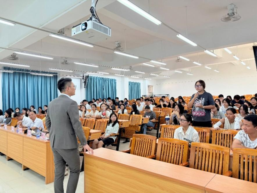 在交流环节,多名学生积极举手发言,踊跃向嘉宾提问互动。现场反响热烈,气氛轻松愉快。