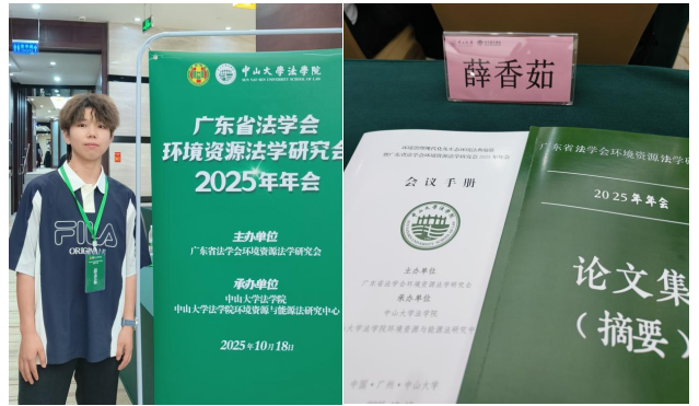 2025年10月18日,由广东省法学会环境资源法学研究会主办、中山大学法学院承办的“广东省法学会环境资源法学研究会2025年学术年会”在中山大学南校区隆重举行。本次年会以“环境治理现代化及生态环境法典编纂”为主题,汇聚了来自全省高校、法院、检察院、律师事务所等单位的专家学者。我院薛香茹老师以该研究会理事身份参会,与各界同仁围绕《生态环境法典(草案)》的编纂理念、制度构建与法律责任等核心议题进行了深入交流。