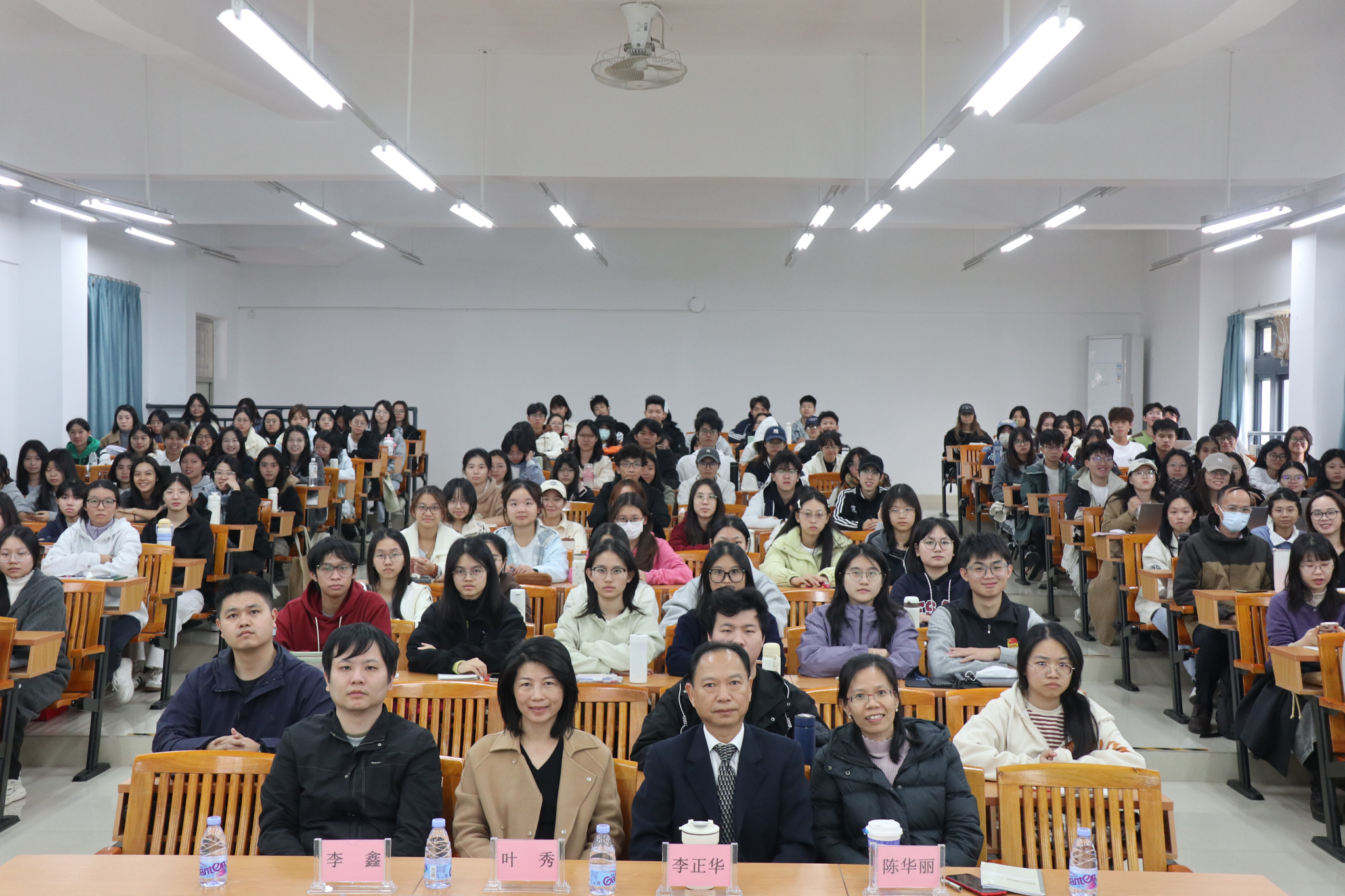 在全面推进依法治国、加快构建中国特色哲学社会科学的新征程上,学术规范已不仅是“学术共同体”的自律准则,更是提升国家文化软实力、抢占创新制高点的战略支点。值广州新华学院二十周年校庆之际,由广州新华学院主办、科研处与法学院联合承办的“筑牢学术根基 · 守护学术尊严”专题讲座,于11月19日在东莞校区定静楼4-415教室举行。讲座特邀法学院院长李正华教授主讲,副院长陈华丽副教授主持。法学院副院长叶秀副教授、党总支副书记李鑫老师到场,与200余名师生共享这场思想盛宴。