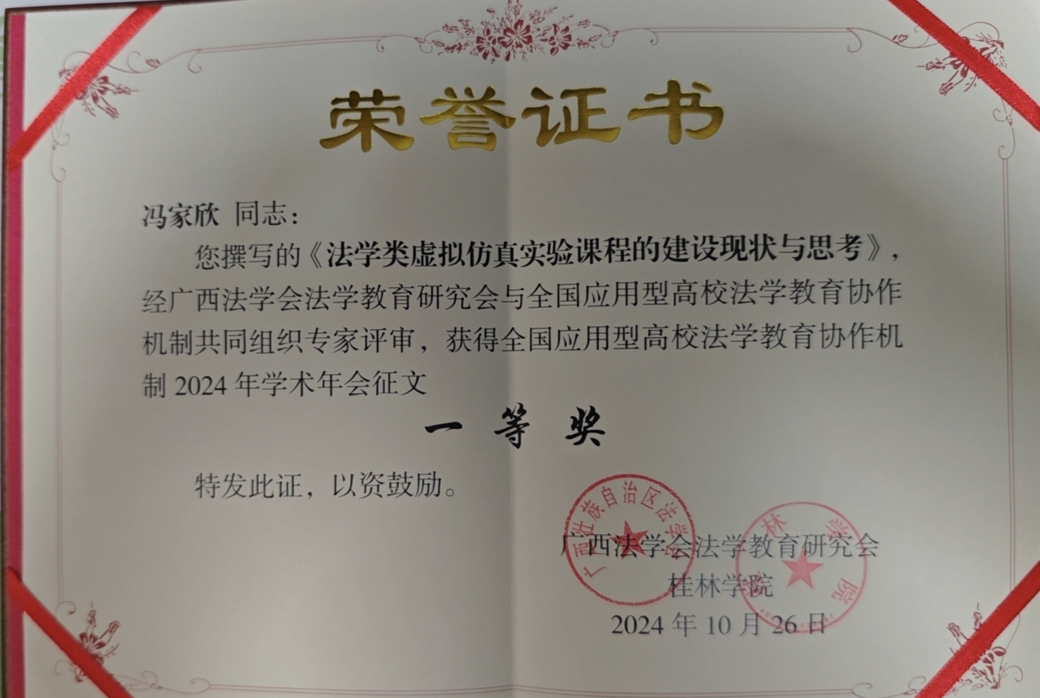 2024年10月25日-28日,为深入学习2023年2月中共中央办公厅、国务院办公厅印发的《关于加强新时代法学教育和法学理论研究的意见》,贯彻落实习近平法治思想,促进民办高校法学学科建设和专业发展,以适应法治中国建设对复合型法律人才培养提出的新要求,由全国应用型法学教育协作机制和桂林学院联合主办,中国政法大学出版社等协办的“应用型法学教育高质量发展主题研讨会暨2024年全国应用型高校法学教育协作机制年会”在广西桂林举行。我院教师代表执行院长李岚、专职教师冯家欣受邀参加此次会议。