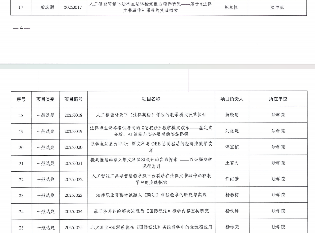 法学院教师2025年度校级教学质量与教学改革工程项目成功立项名单
